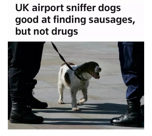 Source: https://www.reuters.com/article/world/uk/uk-airport-sniffer-dogs-good-at-finding-sausages-but-not-drugs-idUSKCN0XB195/